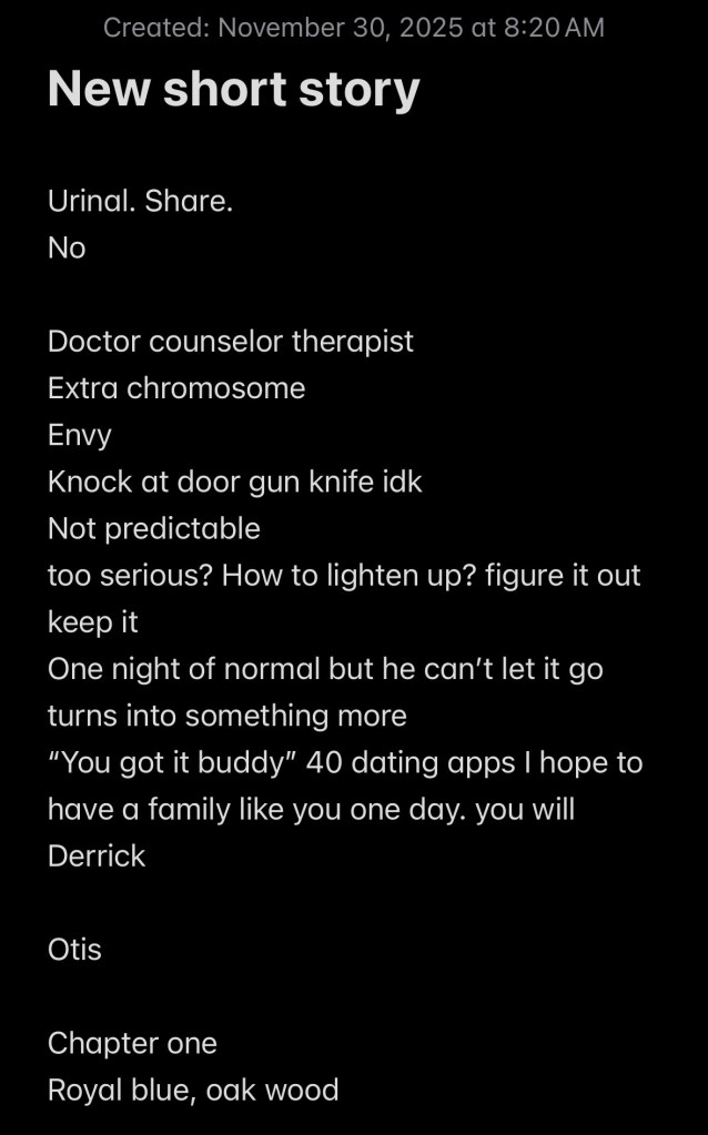 Had I given myself more time, I would’ve liked to polish it up some more, specifically the last chapter. It just feels like Nicholas gave it all up so quick. His whole life, everything he had, and he surrendered it to Otis of all people? Whether this “delusional fantasy” Nicholas confronted was true or not, there’s no way he wouldn’t have put up a tougher fight, right? Still, it’s better than the original ending I initially had. Nicholas was supposed to barge in, kill Otis, and run off into the thunderstorm. What a fucking disaster. Most of my early work as a screenwriter consisted of stories that were just as melodramatic. I’m just relieved that I’m now able to catch myself doing it before putting words on the page. Other than that, I wish I had more time to really study the way psychologists speak with their patients. I would’ve preferred the dialogue between the two parties to be more accurate, or more natural if you will. But, it is what it is. My main goal with these short stories, really, is to focus on the quality of the writing – to dish out as much quality as I can while constricting myself to a pressing deadline.